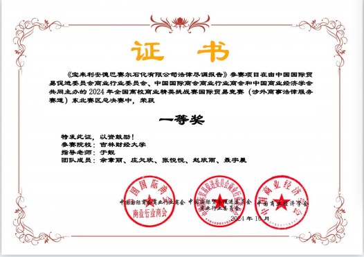 近日,由中国国际贸易促进委员会商业行业委员会、中国国际商会商业行业商会和中国商业经济学会共同主办的2024年全国高校商业精英挑战赛国际贸易竞赛(涉外商事法律服务赛道)东北赛区总决赛圆满落幕。EMC易倍团队在此次竞赛中脱颖而出,荣获一等奖!