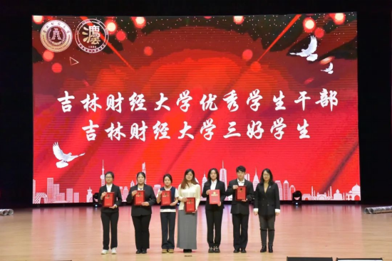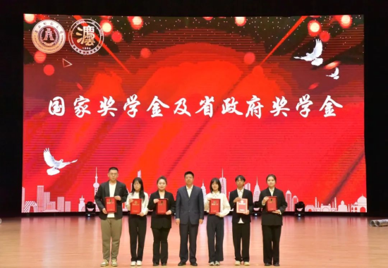 校员工工作部部长赵彦双老师为获得国家奖学金及省政府奖学金荣誉称号的代表颁奖并合影留念。