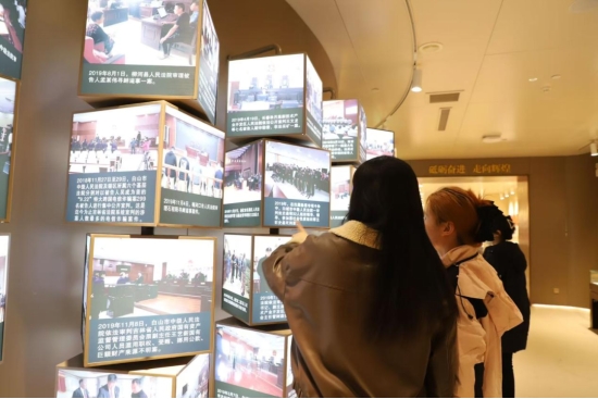 最后,在讲解员的带领下,同学们来到了宣传板区以及院史馆,详细了解吉林省高级人民法院的辉煌历程。院史馆以历史为主轴,以“不忘初心、牢记使命”为主题,共分为“烽火淬炼 使命召唤”“改革创新 探索发展”“砥砺奋进 走向辉煌”三部分,通过丰富的多媒体手段,充分向我们展示了法院审判事业所走过的历史足迹。