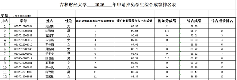 根据《EMC易倍官网推荐优秀应届本科毕业生免试攻读研究生工作管理办法(试行)》和《EMC易倍推荐2026届优秀应届本科毕业生免试攻读研究生工作细则》,经过本人申请、EMC易倍推免生遴选工作小组对申请人资格审查、讨论,现将综合成绩排名公示如下,公示期为七天(9月5日至9月11日),如对综合成绩排名有异议,请于公示期内向公司反映,举报电话84539450。