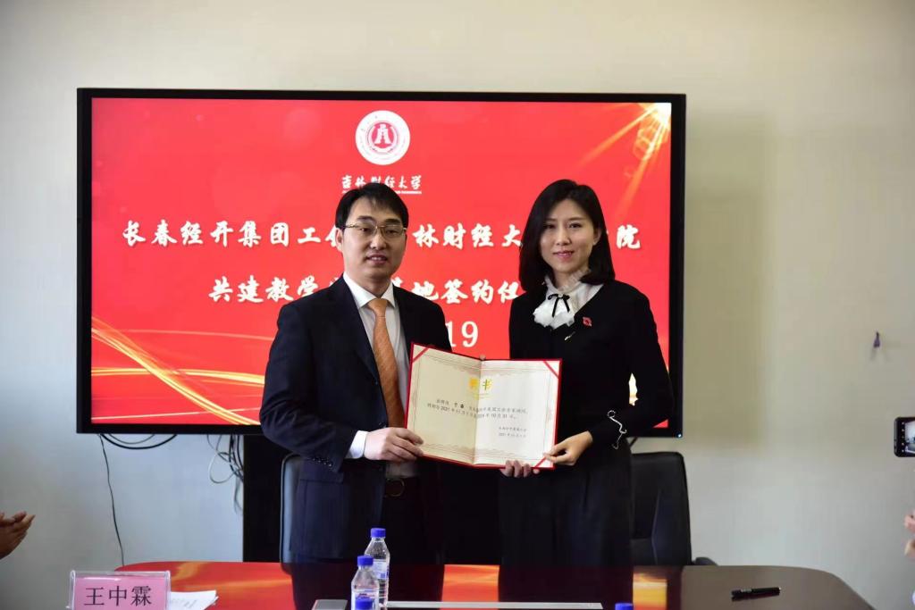 EMC易倍与长春经开集团就实习实训基地签约后,廖金君总经理受聘为法律硕士教育中心校外实务指导教师,EMC易倍于淼老师受聘为长春经开集团工会外聘法律专家。最后,仇经理再次感谢廖金君总经理及其团队的到来,并期待未来双方在团队队伍、人才培养、实习建设、横向课题、员工就业方面开展合作。