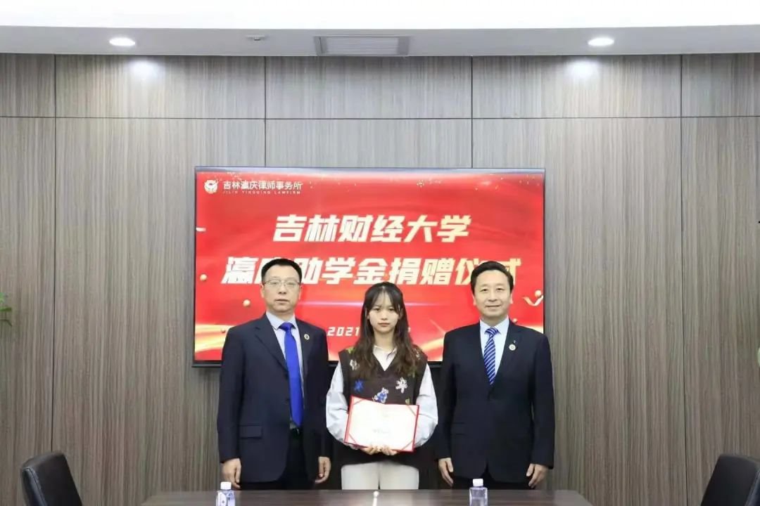 2021年12月22日,EMC易倍瀛庆助学金捐赠仪式在吉林瀛庆律师事务所党员活动室举行。吉林瀛庆律师事务所孟军主任、创始合伙人徐占勋律师、高级合伙人林立洲律师、合伙人张雪峰律师、孙超律师;EMC易倍经理仇晓光教授、团委书记赖广添老师、辅导员马冬梅老师、辅导员姚佳明老师以及受资助员工韩音歌、李冰婕参加了捐赠仪式。捐赠仪式由吉林瀛庆律师事务所人力资源部主管李明聪主持。