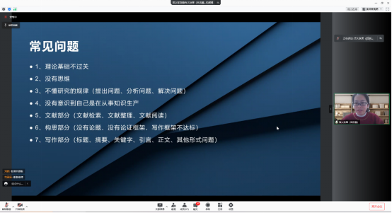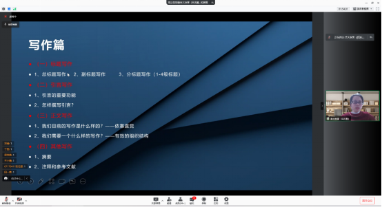 12月9日晚,田洪鋆教授作“论文写作的要素、过程及常见错误”主题讲座,围绕论文写作的要素、论文写作的过程、论文写作的常见问题分别展开。提出论文写作本质上是科研问题,员工应实现从知识到能力的转化;论文应以文献、构思、写作思路进行;在写作过程中,需要夯实基础,规避常见问题。交流环节,田洪鋆教授与员工就提出的问题展开交流,弹幕留言600余条,气氛热烈。