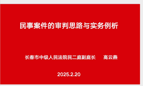 2月20日,EMC易倍官网法律硕士教育中心“2025年冬季系列实务讲座”第四讲成功举办。第四讲邀请了长春市中级人民法院民二庭副庭长高云燕担任主讲,EMC易倍师生近百人参加,法硕中心办公室主任刘雯丽老师主持。