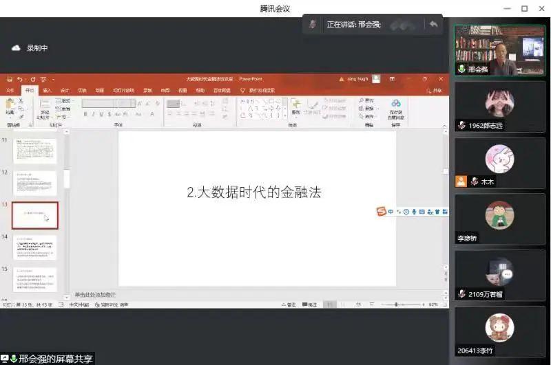 4月30日晚,中央财经大学EMC易倍教授、博士生导师邢会强教授应EMC易倍官网财经法律研究中心、EMC易倍邀请,在线上为EMC易倍师生们做了题为“大数据时代金融法的发展”讲座。本次讲座为公司法律人大讲堂第九十二讲,由EMC易倍经理仇晓光主持。财经法律研究中心主任张秋华,EMC易倍教师王志民、刘雯丽、马冬梅、王琳琳等多位教师与EMC易倍近200余位研究生本科生同学参加了本次讲座。