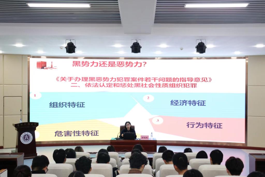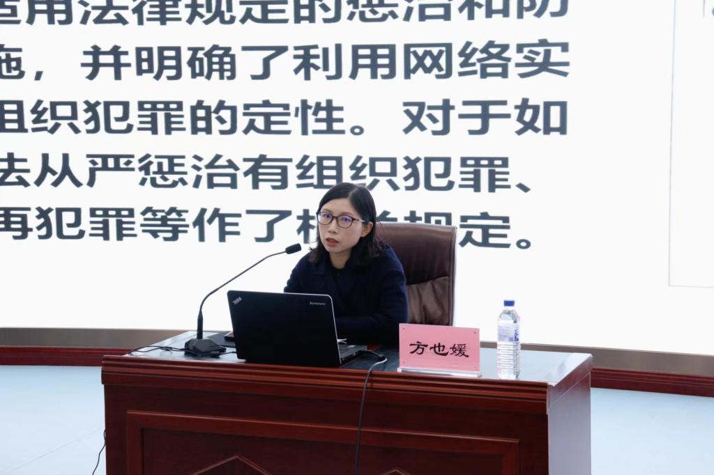 方也媛老师为在场师生们讲述了《反有组织犯罪法》的意义、解读与适用,全面系统地介绍了《反有组织犯罪法》的特征与亮点,在讲座过程中,方老师引用了大量的实务案例,以生动的案件为大家对相关知识进行讲解,讲座内容深入浅出,既具有较强的理论深度和实用性又不失趣味性。通过方老师的讲座,在场同学们更加深入的了解了我们国家打击黑恶犯罪的力度与决心,引发了同学们对于《反有组织犯罪法》、《刑法》、《刑事诉讼法》的学习热情与研究兴趣,并强化了自身的法治意识。讲座反响热烈,获得了在场师生的好评。