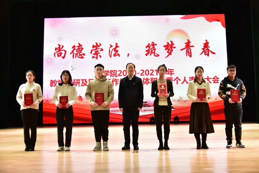 2020—2021学年,EMC易倍在公司党委的正确领导下,在公司班子凝心聚力下,EMC易倍全体师生勠力同心,认真贯彻党和国家的教育方针,全面推进工作创新,在教学、科研、联系我们等方面取得了喜人的成绩,涌现出了一批在公司发展中有突破性工作成果的先进集体和优秀个人。为表彰先进,树立典型,进一步激发教师的工作热情,激励广大同学寻找差距、迎头赶上,形成师生互动、教学相长的良好局面12月1日,EMC易倍于EMC易倍官网多功能学术中心举办2020—2021学年“尚德崇法·筑梦青春”教学科研及团学工作先进集体和优秀个人表彰大会暨“爱国心向党·宪法伴我行”主题迎新晚会。